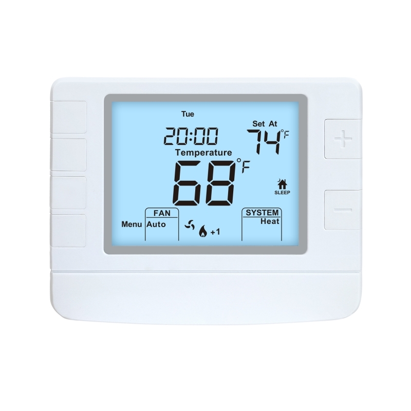 We offer flexible product customization services to meet your specific requirements. The STN2320 thermostat supports programming options of 7 Day, 5/1/1 Day, or Non-programmable modes, providing versatile control for various heating and cooling schedules. It operates on either 2*AAA alkaline batteries or 18~30 VAC NEC Class II power supply at 50/60Hz, making it compatible with a range of installations.